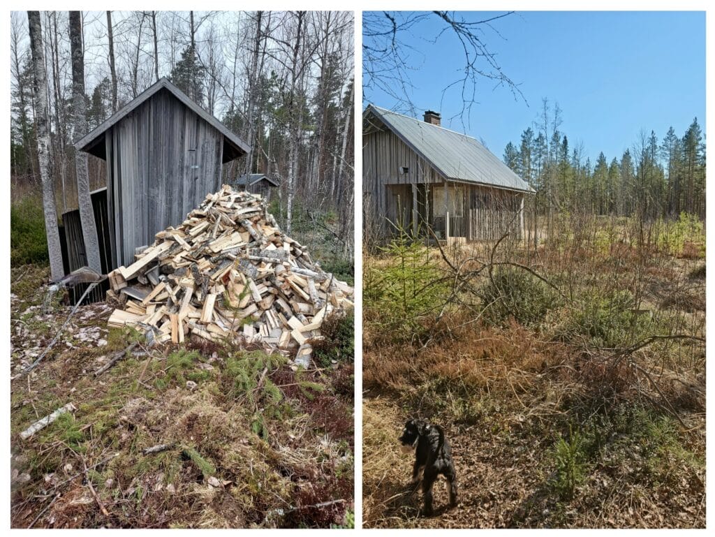 Talvi oli vähäluminen ja pakkastakin oli oikein mukavasti. Mieli alkoi palamaan metsähommiin. Vähän lunta ja saapasta pitävä pohja, sen parempia olosuhteita ei ole moottorisahamiehelle. Kävinkin useana päivänä korpimökilläni harventamassa koivikkoa. Rauhalliseen tahtiin sahailin ja pinoilin pöllejä. Välillä kävin mökin kamiinassa keittämässä kahvit ja söin leivinpaperiin käärimiäni kananmunavoileipiä. Kuin ennen vanhaan. Ikkunasta katselin lumista pakkasluontoa ja ajattelin itsekseni, ettei ollenkaan hullumpaa. Parin päiväkäynnin jälkeen siellä olisi voinut yöpyäkin, mutta kaivo oli jäässä ja hikisen päivän jälkeen saunaa tarvittiin. Sauna ja uni maistui illalla suorastaan taivaalliselta. Ps. Liiteri on kyllä tasasivuinen, jotenkin kuvassa vääristynyt 🙂